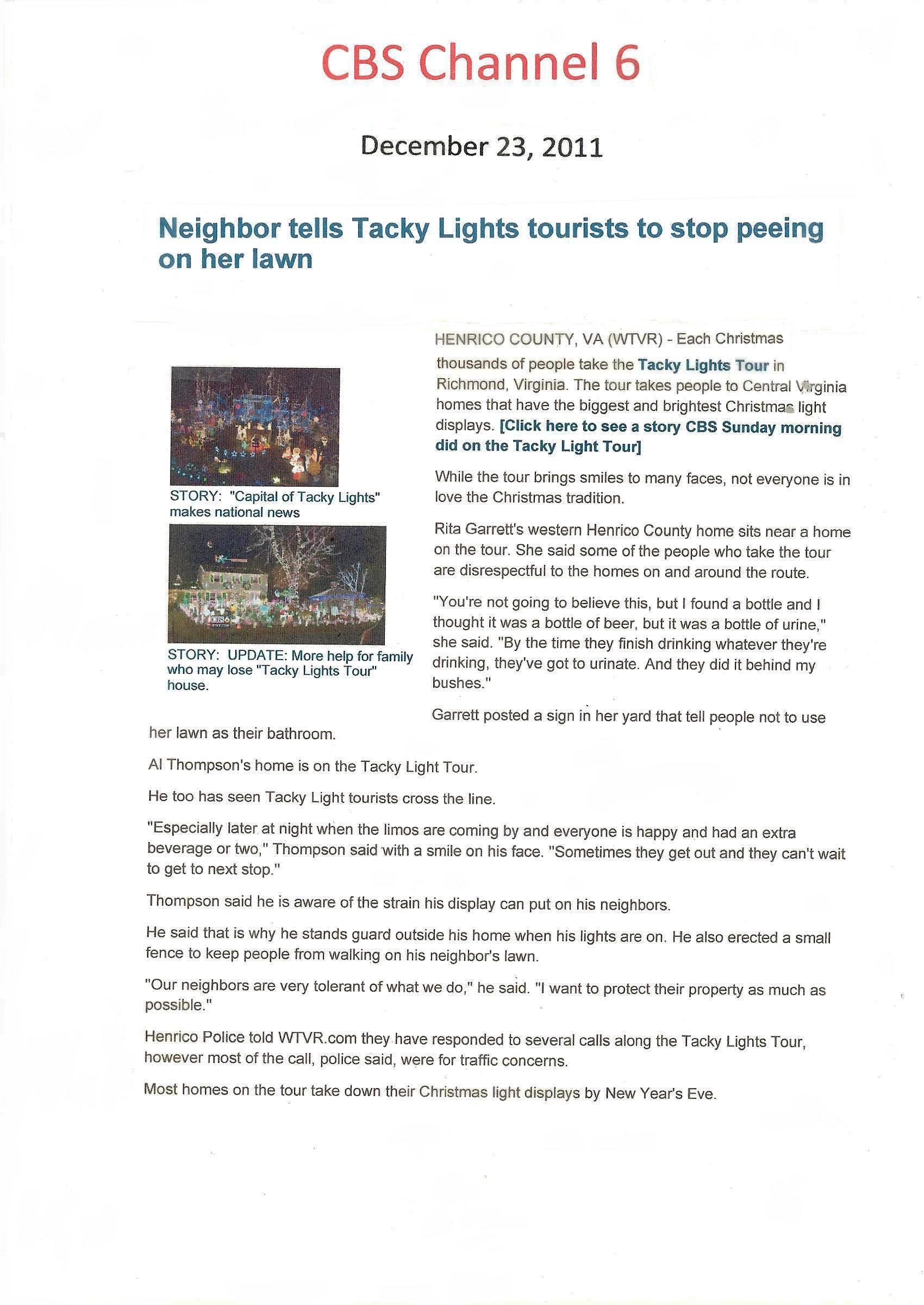 CBS Sunday Morning, Tackylightstour.com